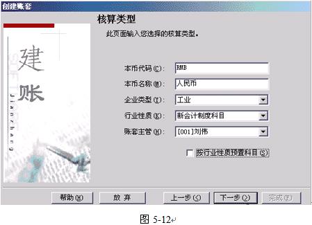 5.行業性質:系統按照所選擇的行業性質預置科目,必須選擇輸入。