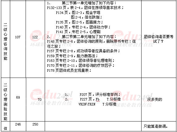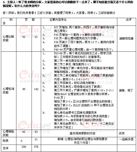 變化比較大的是:心理咨詢技能增加了一個附錄,增加的目的還是相同的,為了方便大家對咨詢技能更好的理解和掌握,沒有增加新的療法,附錄的增加是從職業(yè)化的角度考慮的,是非常有必要的。