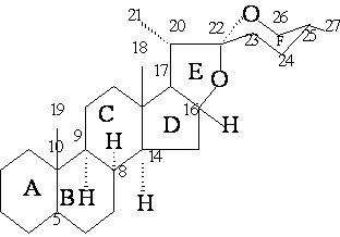 (2)異螺甾烷醇型 自然界中占絕大多數。薯蕷皂苷元是異螺甾烷醇的代表,是合成甾體激素和甾體避孕藥的重要原料。