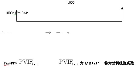 例如,如果希望n年以后有1000元銀行存款,銀行年利率為10%,如果n-1年時(shí)存入銀行那么需要存入1000/(1+10%);如果n-2年時(shí)存入銀行那么需要存入1000/(1+10%)(1+10%);……………如果第0年時(shí)存入銀行那么需要存入1000/(1+10%)ⁿ