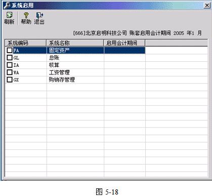 在建立賬套時,可選擇啟用的子系統。也可以在賬套建立完成以后,以賬套主管的身份進入系統管理,再根據需要啟用相應的子系統。