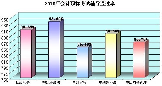 環球網校(www.edu24ol.com)通過對網校學員的回訪及學員的成績反饋,總結出網校2010年會計職稱考試輔導通過率情況如下: