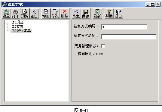 結算方式設置主要包括:結算方式編碼、結算方式名稱、票據管理標志等。票據管理標志是軟件為輔助出納對銀行結算票據而設置的功能,類似與手工系統中的支票登記簿的管理方式。