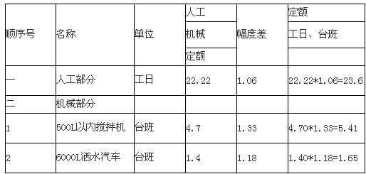 工程內(nèi)容:30m內(nèi)人工取、上料;灑水汽車供水機(jī)械拌合;澆注;扒平;塑料薄膜覆蓋養(yǎng)護(hù)。 單位:100m3