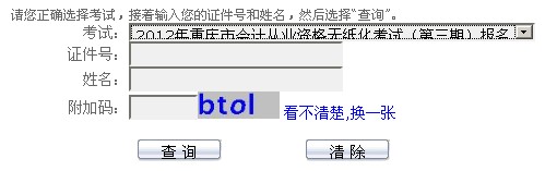 重慶2012年會計從業資格第三期考試成績查詢入口
