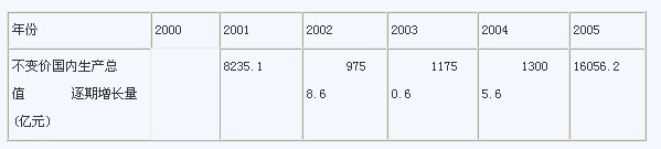 我國2000年2005年期間不變價國內生產總值累計增加( )億元。