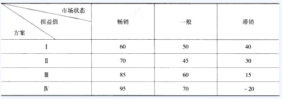 第7題 某企業開發新產品,有四種產品方案可供選擇,四種方案在不同的市場狀態下的損益值如下表所示。決策者采用折中原則進行決策,給定最大值系數α=0.75,該企業應該選擇的方案為( )。