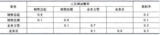 【試題解析】:根據企業人員變動矩陣,一年后有70%的業務主管留任,10%的業務員升為業務主管,所以一年后業務主管的內部供給量為10×0.7+100×0.1=17。
