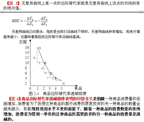 邊際替代率MRS=- =- ,即表示放棄第二種商品 個單位,獲得第一種商品 個單位。無差異曲線上任何一點的斜率 =- ,則邊際替代率為1/2,即表明放棄1個單位Y商品獲得2個單位的X商品,或者是放棄2個單位的X商品,獲得1個單位的Y商品。