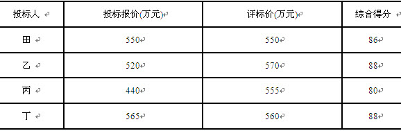 43.某機電產(chǎn)品國際招標(biāo)項目采用綜合評價法評標(biāo),評標(biāo)結(jié)果見下表: