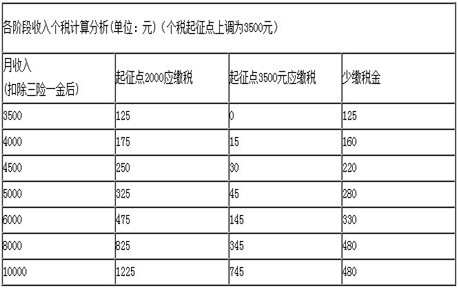 個稅起征點是3500繳稅=全月應納稅所得額*稅率-速算扣除數實發工資=應發工資-四金-繳稅全月應納稅所得額=(應發工資-四金)-3500扣除標準:個稅按3500元/月起征標準算如果某人的工資收入為6000元,他應納個人所得稅為:(6000―3500)×10%―105=145(元)。