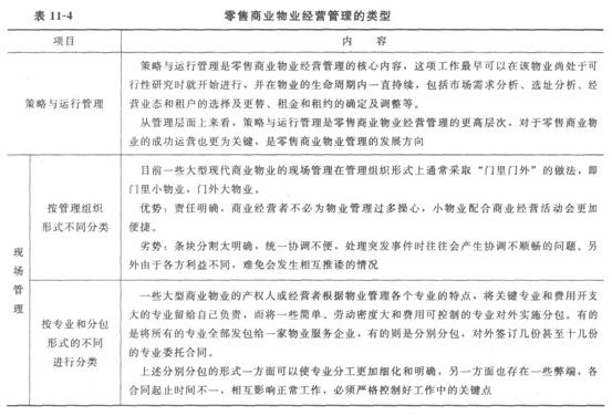 零售商業物業及其分類之零售商業物業經營管理的類型