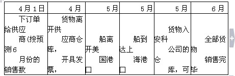 對于A類的3種產品,安科公司實行了連續性檢查策略,每天檢查庫存情況,隨時掌握準確的庫存信息,進行嚴格的控制,在滿足客戶需要的前提下維持盡可能低的經常量和安全庫存量,通過與國外供應商的協商,并且對運輸時間做了認真的分析,算出了該類產品的訂貨前置期為2個月(也就是從下訂單到貨物從安科公司的倉庫發運出去,需要2個月的時間)。即如果預測在6月份銷售的產品,應該在4月1日下訂單給供貨商,才能保證在6月1日可以出庫。其訂單的流程見下表。