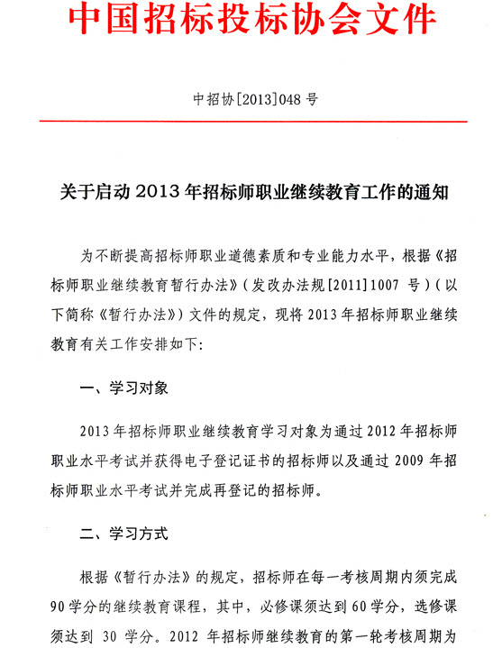 關(guān)于啟動2013年招標(biāo)師職業(yè)繼續(xù)教育工作的通知