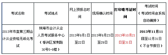 2013年下半年珠海會計從業(yè)考試準考證打印入口