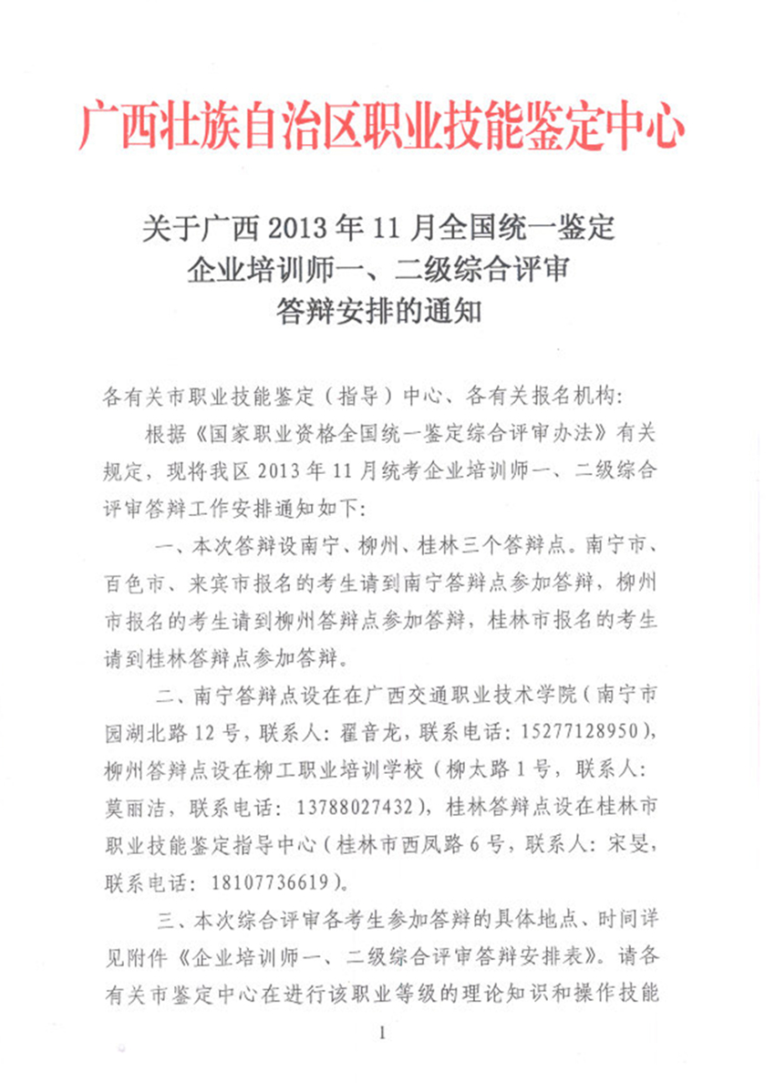 廣西省2013年11月企業培訓師一、二級綜合評審答辯安排通知