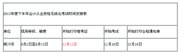 2013年下半年銀川會計從業資格考試準考證打印時間