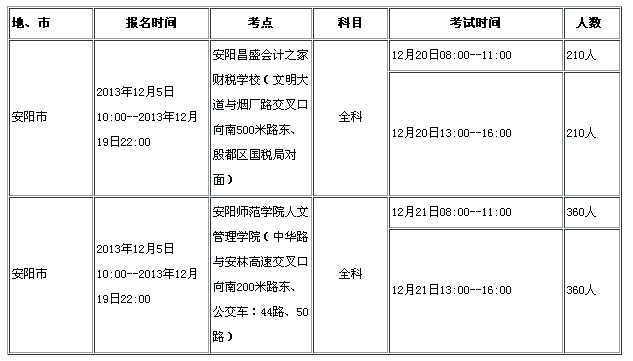 2013年第四季第二期安陽市會計從業(yè)資格考試計劃