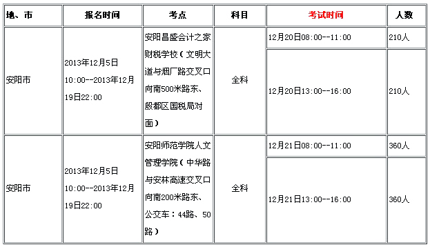 2013年第四季第二期安陽會計從業(yè)資格考試計劃