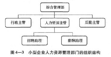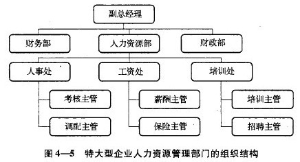 大中型企業一般都會擁有專門的人力資源管理部門,其設置的特點是:①在某些人力資源管理的職能方面出現專業化的分工;②人力資源部門中擁有人力資源管理老師或通才;③人力資源部門經理十分重要,他們與企業最高層的聯系更為密切,往往出現專門負責人力資源管理的高層領導。
