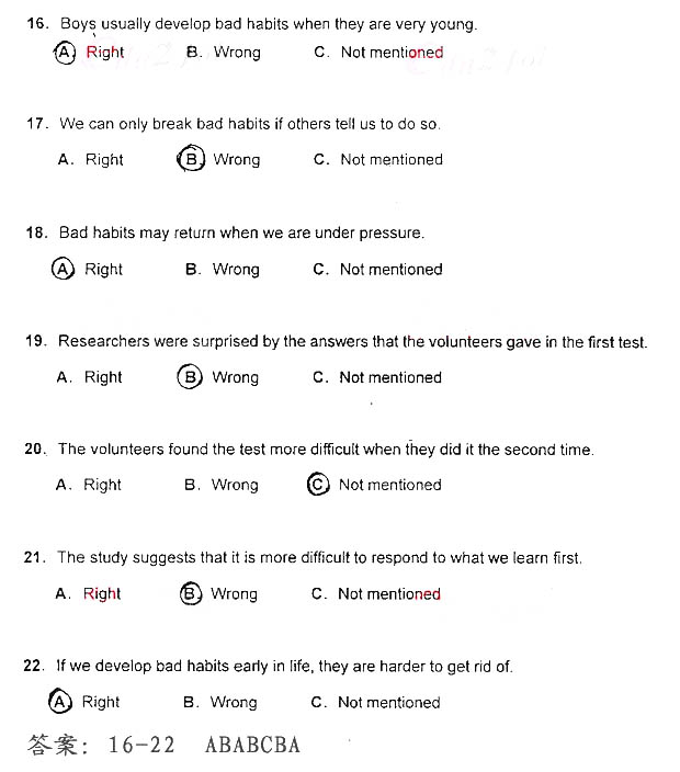 - 職稱英語真題《衛生類b級》閱讀判斷練習2017-06-29