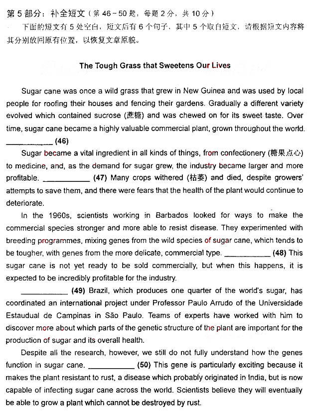 - 職稱英語真題及答案衛生C補全短文2017-06-29