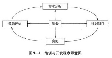 按照培訓管理的國際標準ISO100015,完整的培訓與開發程序包含四個步驟:培訓與開發的需求分析、計劃制訂、實施和效果評估。同時還必須對培訓與開發的整個過程進行監督。見圖9-1。