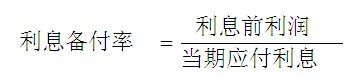 利息備付率是指在借款償還期內的稅息前利潤與當期應付利息的比值,它從付息資金來源的充裕性角度反映項目償付債務利息的保障程度和支付能力。其計算公式為: