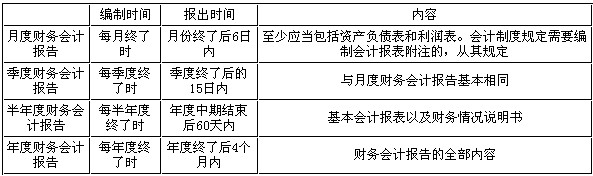 各期間財(cái)務(wù)會(huì)計(jì)報(bào)告編制的時(shí)間要求和基本內(nèi)容是: