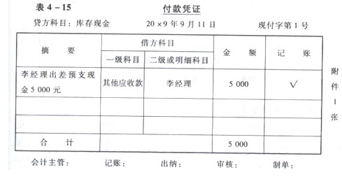 經(jīng)濟業(yè)務(wù):2009年9月11日李經(jīng)理出差預(yù)借差旅費5000元,以現(xiàn)金支付。分錄如下: