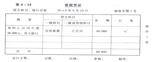 經(jīng)濟業(yè)務(wù):2009年9月10日收到乙公司所欠貨款60000元,存入銀行。分錄如下: