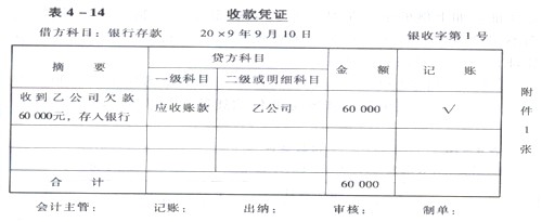 經(jīng)濟(jì)業(yè)務(wù):2009年9月10日收到乙公司所欠貨款60000元,存入銀行。分錄如下: