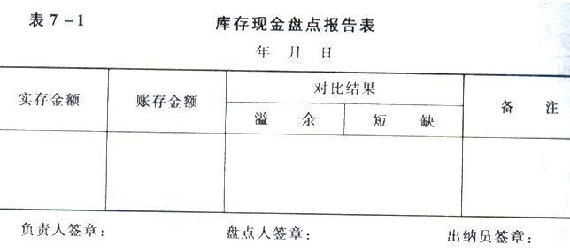 現金清查后應填寫“現金盤點報告表”,以其作為原始憑證來調整現金日記賬的賬面記錄。現金盤點報告表的格式參見表7-1。