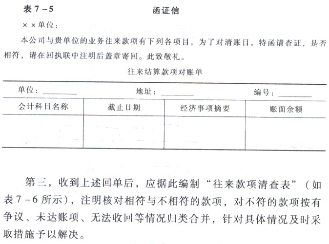 往來款項的清查一般采用發函詢證的方法進行核對。見表7-5
