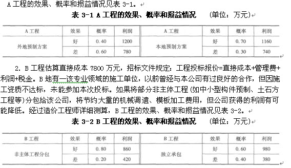 某工程公司于2001年8月面臨A、B兩項工程的投標;通過詳細研究招標文件,并對A、 B兩項工程所在地進行現場踏勘,該公司決定參加其中一項工程的投標。A、B兩項工程的決策數據如下: