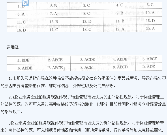 2.A、B兩個(gè)物業(yè)服務(wù)企業(yè)的服務(wù)現(xiàn)況分別體現(xiàn)了物業(yè)管理市場(chǎng)失靈什么現(xiàn)象?分別說(shuō)明政府應(yīng)如何進(jìn)行調(diào)節(jié)。
