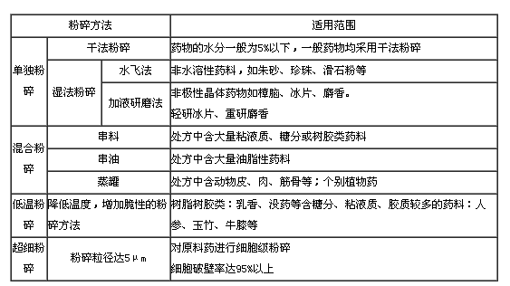 系將干燥藥材直接粉碎的方法。藥材應先采用曬干、陰干、烘干等方法充分干燥再進行粉碎。根據藥材特性可采用混合粉碎、單獨粉碎或特殊處理后混合粉碎。