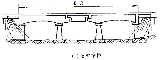 懸臂梁橋相當于簡支梁橋的梁體越過其支點向一端或兩端延長所形成的梁式橋結(jié)構(gòu)。其結(jié)構(gòu)特點是懸臂跨與掛孔跨交替布置,通常為奇數(shù)跨布置。