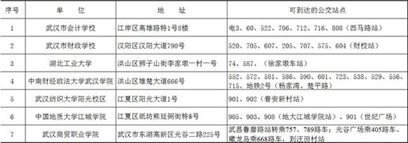 2013年武漢會計從業資格考試各考點通訊地址
