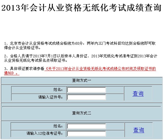北京2013年會計從業資格無紙化考試成績查詢入口