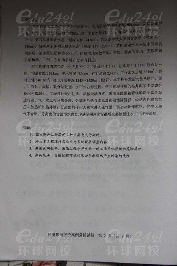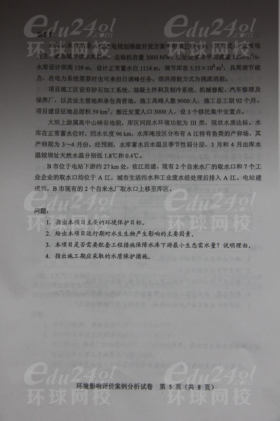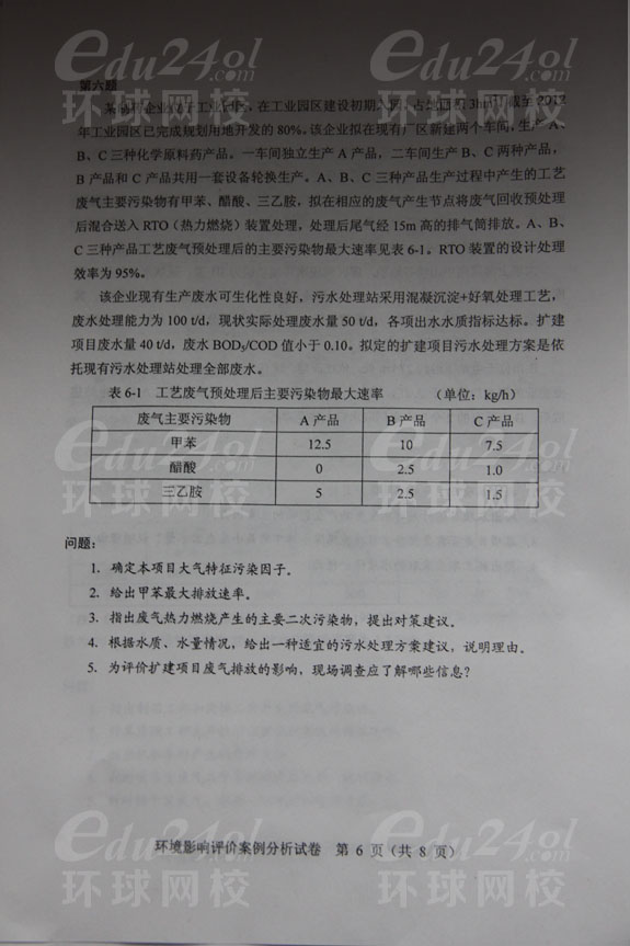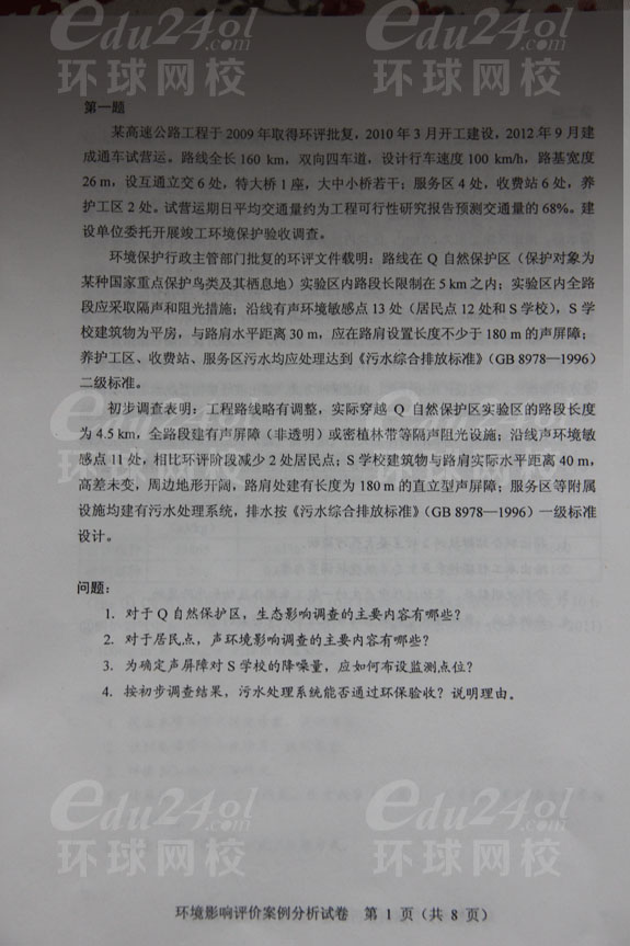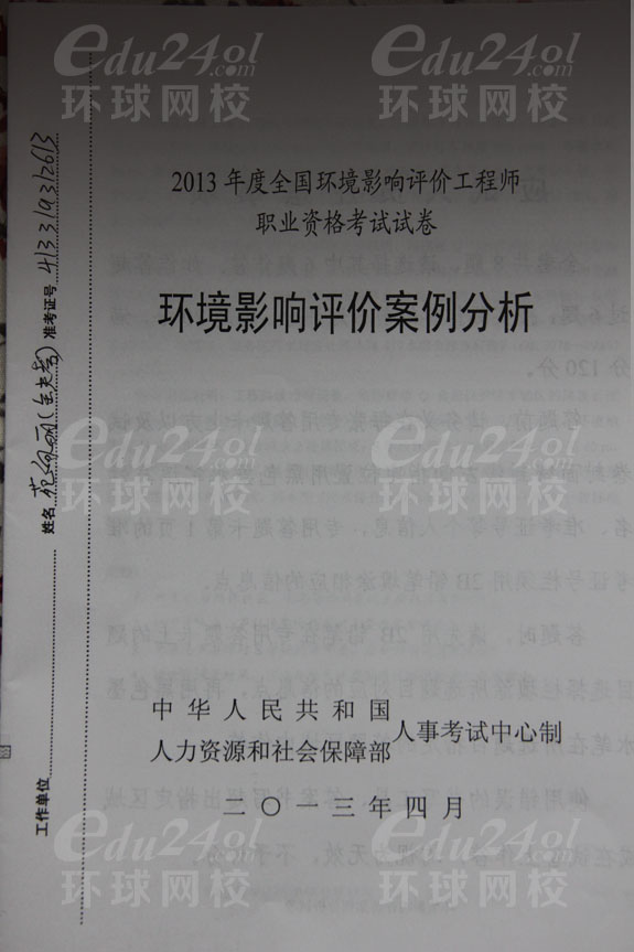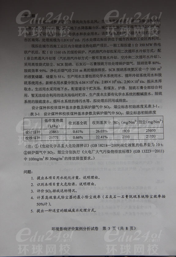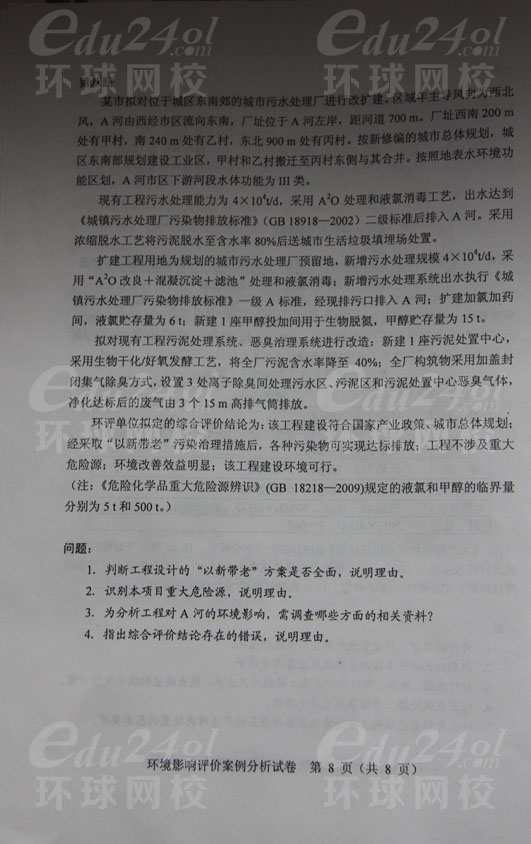2013年環(huán)境影響評價師考試《案例分析》真題分享--環(huán)球首發(fā)