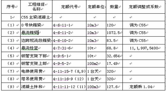 全橋配有塔吊和電梯,安拆費用不計,其使用費計入到主梁混凝土費用中。