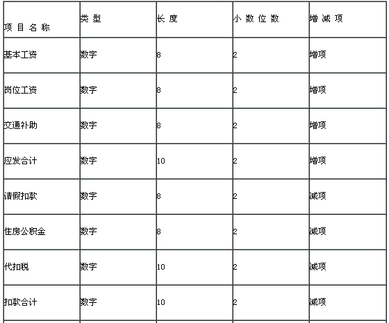 工資項目設置即定義工資項目的名稱、類型、寬度、小數、增減項。系統中有一些固定項目,是工資賬中必不可少的,包括:“應發合計”,“扣款合計”,“實發合計”,這些項目不能刪除和重命名。其他項目可根據實際情況定義或參照增加。如:基本工資、獎勵工資、請假天數等。在此設置的工資項目是針對所有工資類別的全部工資項目。