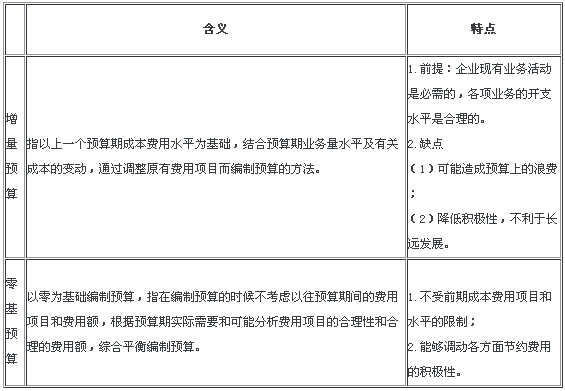 (三)按編制預算出發點的特征:增量預算與零基預算