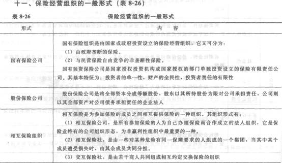 保險險種及保險公司的選擇之保險經(jīng)營組織的一般形式