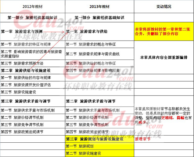 2013年經濟師考試《中級旅游》新版教材變動揭秘