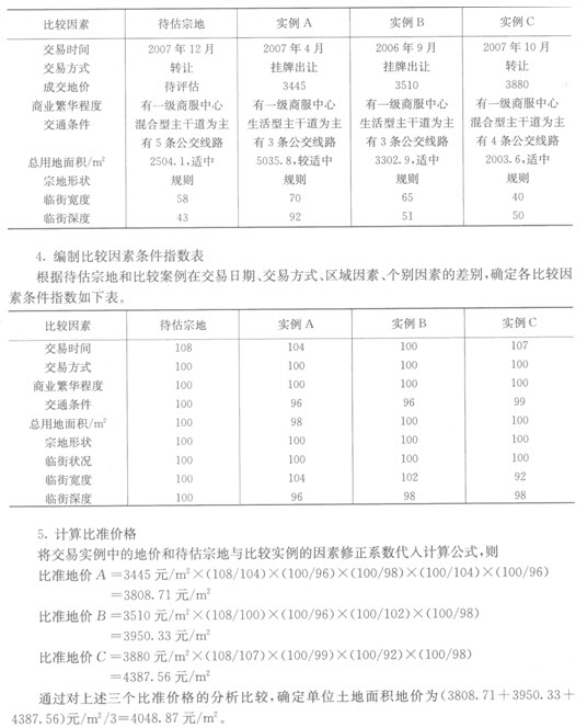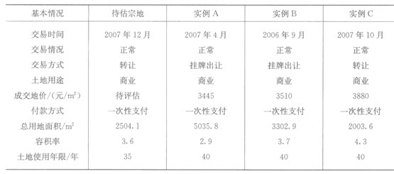 根據收集到的近幾年商業用地交易案例資料,確定了與待估宗地類似的三宗土地作為比較對象,基本情況見下表。