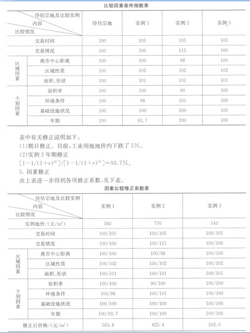 根據影響工業用地地價的主要因素,結合評估對象和比較實例的差異情況,選擇若干比較因素。