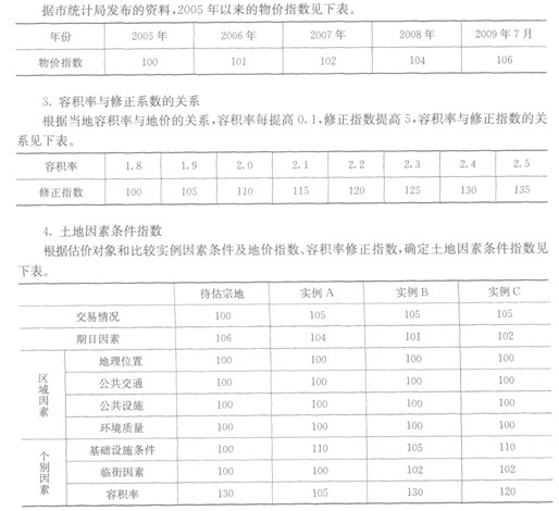 A、B、C為正常出讓地價(市場價格);估價對象土地為市場價格,考慮到法院對估價對象土地的處理,交易情況略向下修正。