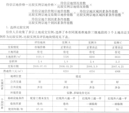 由于估價對象位于城市低密度居住區,房地產市場和土地市場比較發達,有較多的成交實例可以選擇,根據《城鎮土地估價規程》(以下簡稱《規程》)并結合估價對象的具體特點,選擇市場比較法及成本逼近法進行評估。